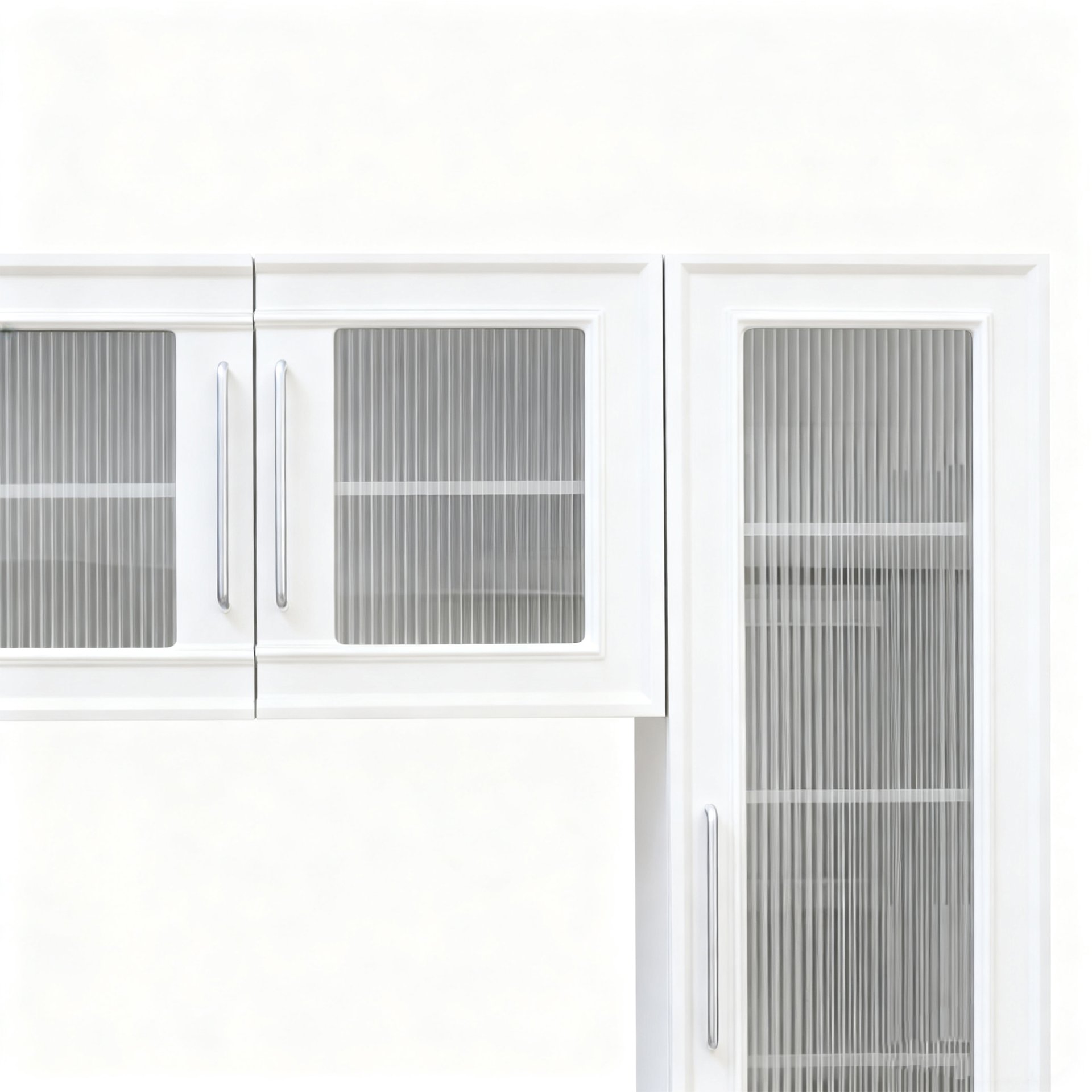 • Elegant Striped Glass Cabinets:Top and side cabinets showcase fluted glass doors, creating a semi-transparent effect thats perfect for displaying decorative pieces or treasured collectibles while maintaining a sense of privacy.