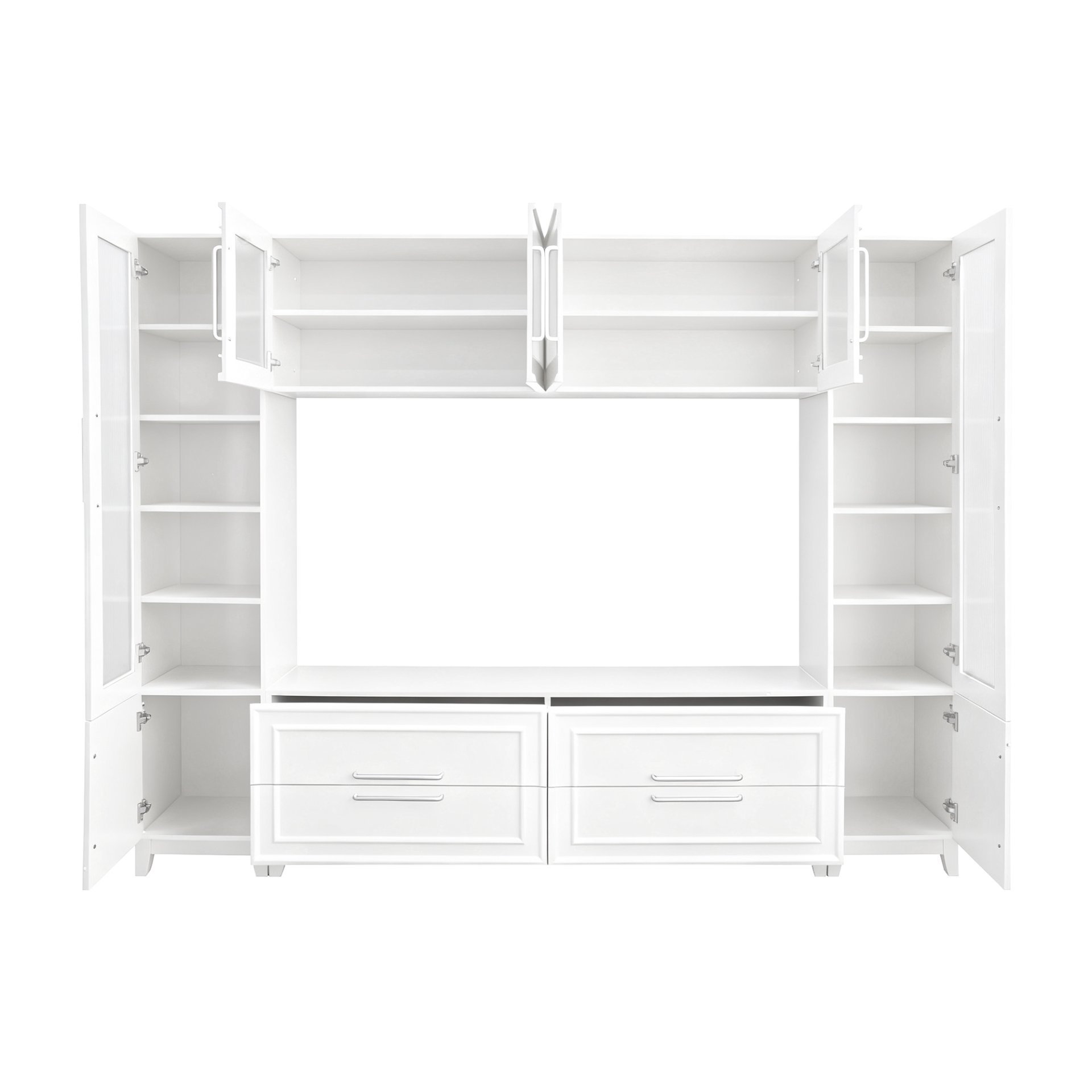 • Multifunctional Storage Space:Includes 4 closed drawers at the bottom and multiple upper and side cabinetsideal for organizing media devices, books, accessories, and everyday essentials. Built-in cable management keeps wires neat and hidden.